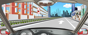 道路右侧白色实线标示机动车道与人行道的分界线。