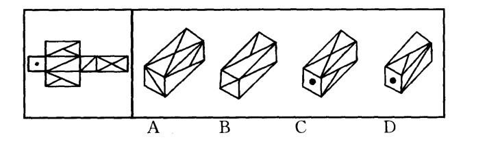 左边给定的是纸盒的外表面,下面哪一项能由他折叠而成?