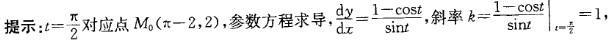 已知曲线L的参数方程是,则曲线L上t=π/2处的切线方程是: A. x+y=π B.x-y=π-4 C. x-y=π D.x+y=π-4