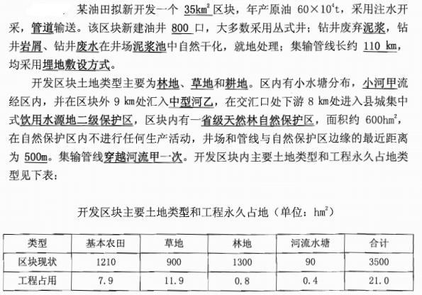 油田开釆项目 题干 问题 1.确定本项目的生态评价范围。 2.指出