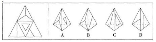 左边给定的是纸盒外表面的展开图,右边哪一项能由它折叠而成?请把它找出来