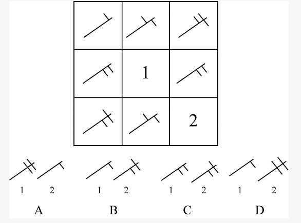 从所给四个选项中,选择最合适的填入1和2处,使之呈现一定的规律性: