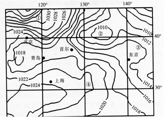 下图为2015年12月26日8时亚洲局部地区海平面气压分布图(单位:百帕),读图完成问题。