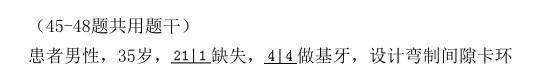 (45-48题共用题干) 患者男性,35岁, 缺失, 做基牙,设计弯制间隙卡环