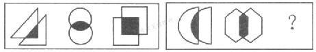题中规律是三个图形是两个相同图形且交叉部分为阴影。