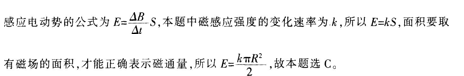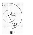 如图4所示,在以0为圆心,半径为R的虚线框内有垂直纸面向里的匀强磁场,磁感应强度8随时间变化关系为B=Bo+kt(k为常数)。在磁场外有一以0为圆心,半径为2R的半圆形导线,则该半圆形导线中的感应电动势大小为()