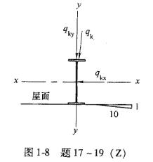 某轻屋盖钢结构厂房,屋面不上人,屋面坡度为1/10。采用热轧H型钢屋面檩条,其水平间距为3m,钢材采用Q235钢。屋面檩条按简支梁设计,计算跨度l=12m。假定,屋面水平投影面上的荷载标准值:屋面自重为0.18kN/m2,均布活荷载为0.5kN/m2,积灰荷载为1.00kN/m2,雪荷载为0.65kN/m2。热轧H型钢檩条型号为H400×150×8×13,自重为0.56kN/m,其截面特性为:A=70.37×102mm2,IX=18600×104mm4,Wx=929×103mm3,Wy=97.8×103mm3,iy=32.2mm。屋面檩条的截面形式如图1-8所示。