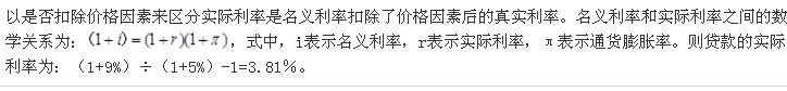 某年的通货膨胀率是5%,银行贷款利率为9%,则贷款的实际利率是( )。A、3、67% B、3、81% C、4、59% D、4、76%
