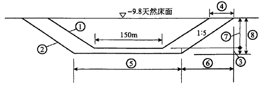 背景资料某航道局承担某港3 万吨级航道疏浚工程,采用1 艘4500m3 耙吸式挖泥船施工。航道设计底标高-12.0m,设计底宽150m,底质为淤泥质土,边坡1:5,计算超深0.7m,计算超宽9m,疏浚工程量计算断面如下图所示。设计疏浚工程量3178157m3(施工期回淤很小,不计)。开工前,施工单位按浚前测量的水深图计算并经监理确认的疏浚工程量为3200876m3。疏浚土全部外抛至外海指定抛泥区,平均运距16.8km。根据工程环境、施工经验和船机状况,预计的施工参数如下:船舶平均航速8.6 节,往返航行时间2.1h,调头和卸泥时间0.35h,挖泥装舱时间1.2h,装舱量2200m3,三班工作制,时间利用率75%。