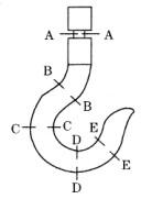 起重机械吊钩的断裂可能导致重大的设备及人身伤害事故。吊钩受力比较复杂,磨损比较大。吊钩检验中,必须了解吊钩的危险断面所在位置。下图中,吊钩的危险断面位置包括()