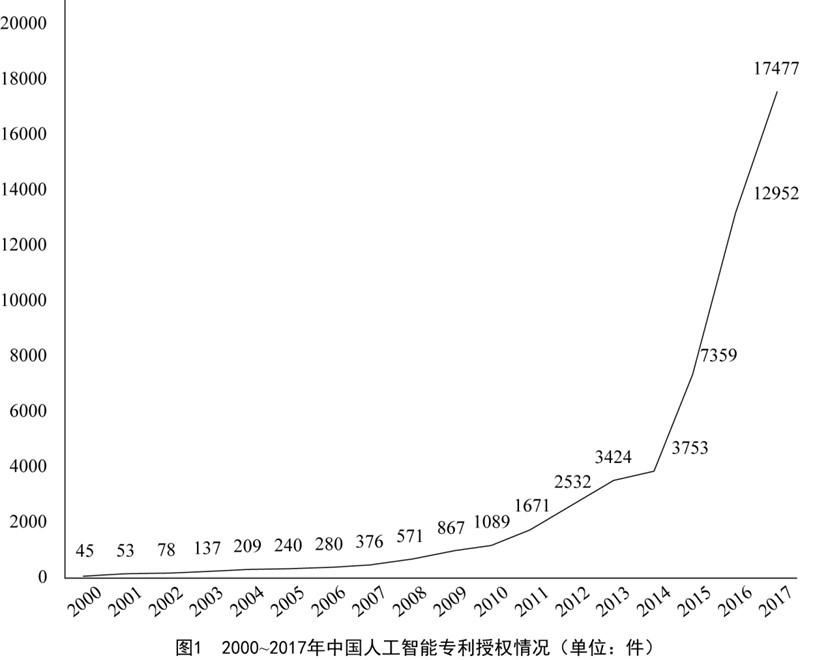 下列年份中,中国人工智能专利授权量增速最快的是: