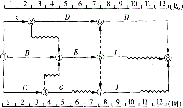 某工程双代号时标网络计划如下图所示,其中工作C的总时差为( )周。