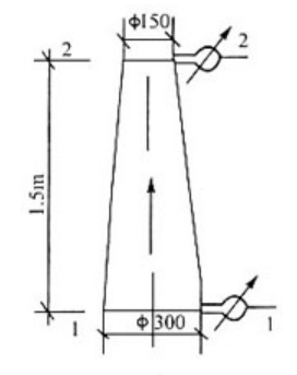 有一垂直放置的渐缩管,内径由d1=300mm渐缩至d2=150mm,水从下而上自粗管流入细管。测得水在粗管1—1断面和细管2—2断面处的相对压强分别为98...