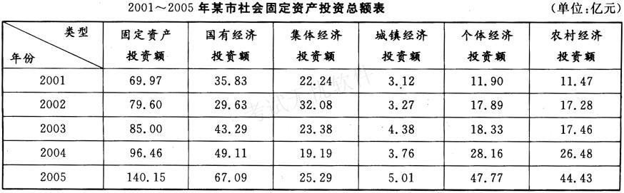 根据下面的统计表,回答问题。 2003年该市的集体经济投资额比2002年增长了( )。A.35.26% B.29% C.-27.1% D.27.1%