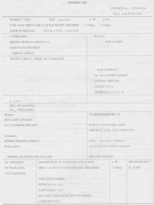 “收货单位”栏应填( ). A.北京宏发国际贸易公司111692