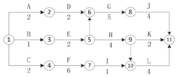 某施工单位承建一矿井井底车场及硐室工程,编制的施工网络计划如图所示,其中井底车场