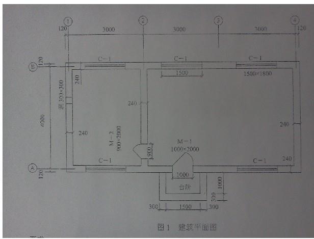 某单层建筑物平面图如图1所示,屋面板顶标高为2.2m,砖墙厚240mm,屋面板厚