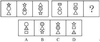 A. 如上图所示 B. 如上图所示 C. 如上图所示 D. 如上图所示A本题考查图形的元素的组成,前一组图形中均由3种相同的元素组成,后一组满足相同