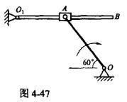 在图4-47所示机构中,已知OA= 3m, O1B = 4m, ω=10 rad