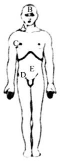 患者,男,40岁。发热38.3℃,行物理降温,图示的哪个部位不适合放置冰袋()