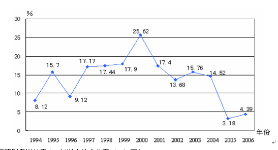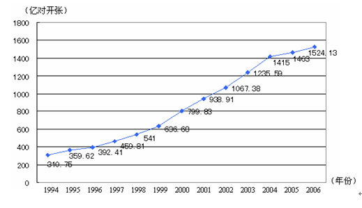 图1:1994至2006年全国报纸印刷量增长曲线 图2:1994至