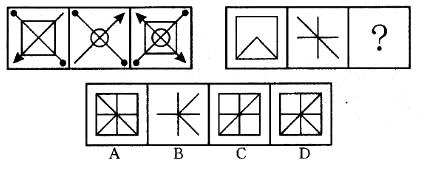 每组图形,前两个图叠加并旋转90°后形成第三个图,故选D。
