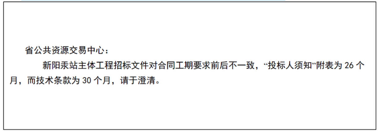 背景:招标人**省水利工程建设管理局根据《水利电工程标准施工法招标文件》(2009 年版)编制了新阳汞站主体工程施工招标文件,交易场所为**省公共资源交易中心,投标截止时间为2015 年7 月19 日。在阅读招标文件后,招标人**集团对招标文件提交了异议函。