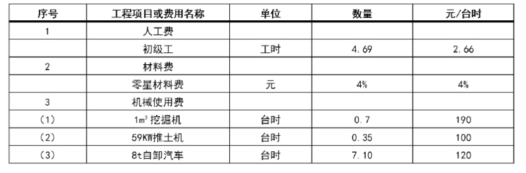 经过评标,***集团中标,根据招标文件,施工围堰工程为部价承包项目,招标文件提供了初步设计施工导流方案,供投标人参考,***集团采用了招标文件提供的施工导流方案。实施过程中,围堰在设计使用条件下发生坍塌事故,造成30 万元直接经济损失,***集团以施工导流方案由招标文件提供为由,在事件发生后依合同规定程序陆续提交相关索赔函件,向发包人提出索赔。围堰拆除工程采取1m3 挖掘机配8t 自汽车运输施工,运距3km,相关定额如表4-2 所示。围堰IV 类土(定额调整系数为1.09),初级工,1m3 挖掘机、59kw 推土机、8t 自卸汽车的单价分别为2.66 元/工时、190 元/台时、100 元/台时、120 元/台时。