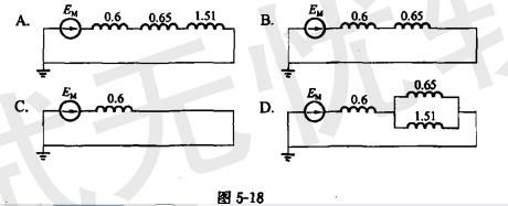根据DL/T5222—2005附录F.5.2的(F.5.2-1)式确定:两相接地短路时,短路点的正序短路电流的合成阻抗(标么值)为正序合成阻抗和负序与零序并联后的合成阻抗之和。据此可判定,在四个复合序网图中,只有图D是正确的。