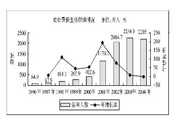 1997 年参与城市最低生活保障的人数比 1996 年提高了几个百分点?