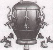 图中的仪器是地动仪,地动仪是东汉科学家张衡制作的测量地震的仪器。