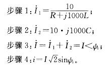 图示电路中,u=10sin(1000t+30°)V,如果使用相量法求解图示电路中的电流i,那么,如下步骤中存在错误的是: