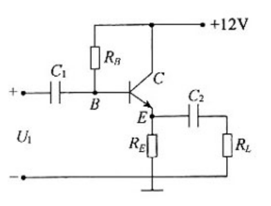 图示射极输出单管放大电路,已知RB=200kΩ、RL=10kΩ,晶体三极管β=60,交流输入电阻γbe≈1kΩ。求所示单管放大电路的电压放大倍数