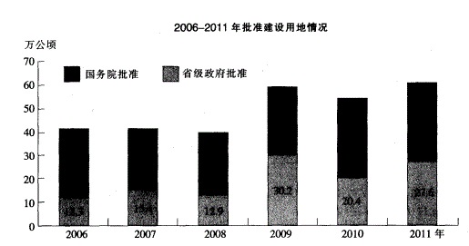 2011年全国批准建设用地61.2万公顷,其中转为建设用地的农用地41.05万公