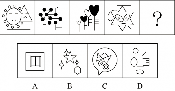 从所给四个选项中,选择最合适的一个填入问号处,使之呈现一定的规律性: