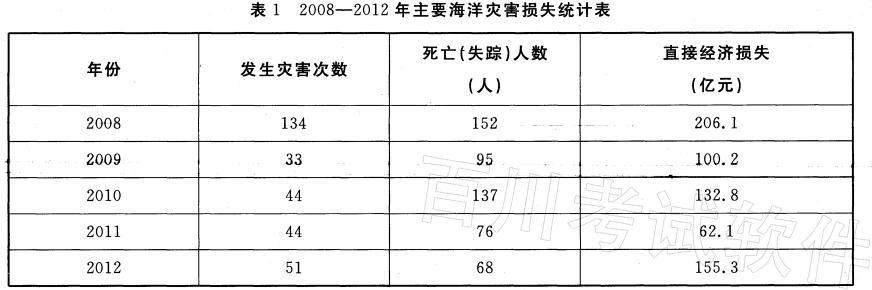 下列选项能从已知信息中推出的是( )。A.2009—2012年,主要海洋灾害造成的直接经济损失逐年提高 B.2012年沿海省(自治区、直辖市)新确权发放