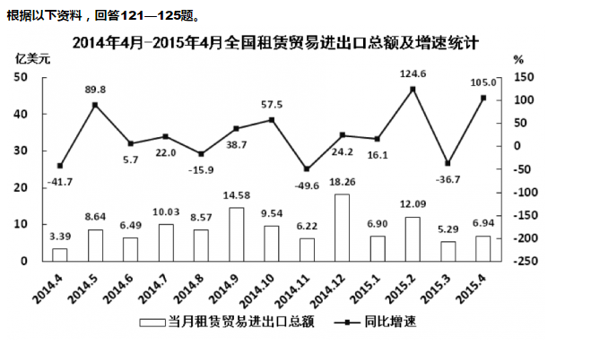 2014年下半年全国租赁贸易进出口总额约为多少亿美元?()