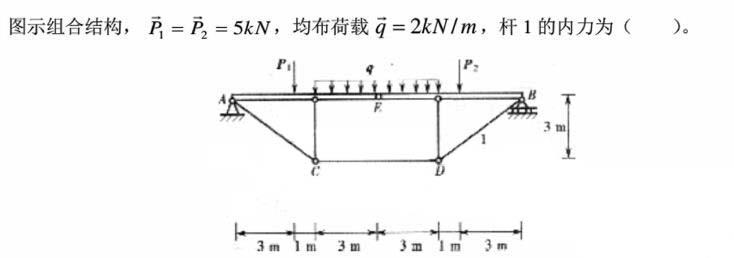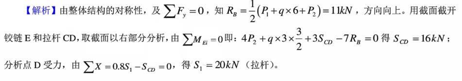 图示组合结构,杆1的内力为()。 A.12kN,拉杆B.16kN,拉杆C.20kN,拉杆D.24kN,拉杆