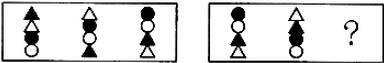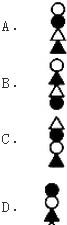 第一组图形中,每个子图的最上面的图形依次移到最下面;第二组图形中,每个小图可以分为三角形和圆形两个部分,上移的图形部分黑白互换,另外一部分颜色不变。所以第三个子图中,圆形部分上移,黑白互换,三角形部分颜色不变,因此答案选A。