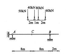 图示梁在给定移动荷载作用下,使截面C弯矩达到最大值的临界荷载为: