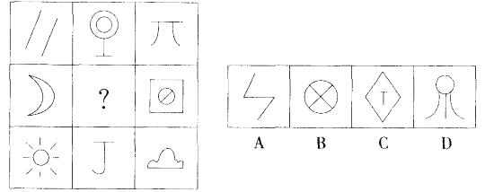 从所给的四个选项中,选择最合适的一个填入问号处,使之呈现一定的规律性:
