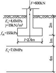 某柱下独立基础的底面尺寸为1.6m×2.4m。上部结构传至基础顶面的荷载准永久组合值Fk=600kN,基础埋深d=2.0m,其余如图所示。