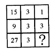 15 /3+1 = 9 / 3+3 = 6,则 27 / 3 + ? = 6,故? = -3,选 A。