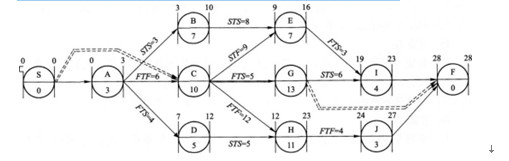 计算该单代号搭接网络计划的时间参数,如下图所示: