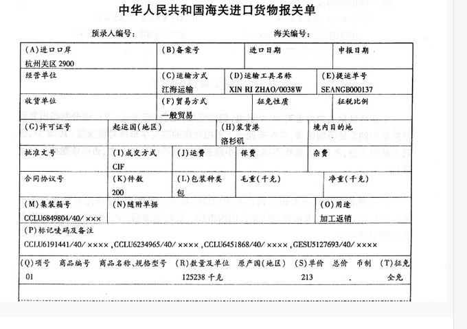 练习题(一)杭州华云纸业有限公司(3301910221)从境外采购废纸(法定计量单位为千克)一批,拟加工成白卡纸后最终销往国内市场,货物进境后,华云公司自行向口岸海关办理报关手续。