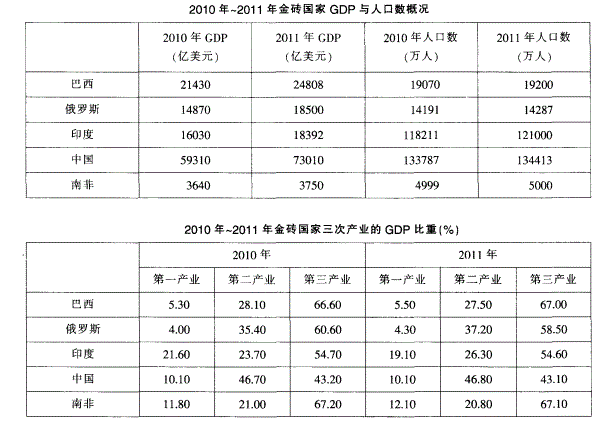 根据以下资料 21世纪头10年,金砖国家整体经济平均增长率超过8%,远高于发达