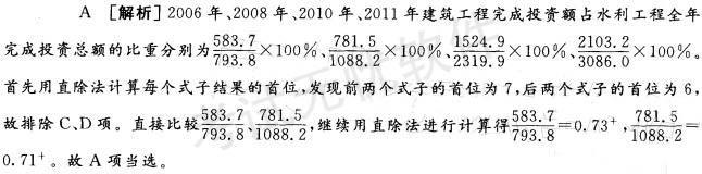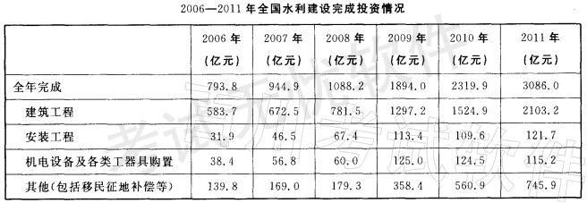 建筑工程完成投资额占水利工程全年完成投资总额比重最大的年份是( )。A. 2006 年 B. 2008 年 C. 2010 年 D. 2011 年