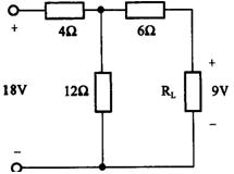 根据题解图,列基尔霍夫电流方程为:I=I1+I2。根据基尔霍夫电压定律列写网孔电压方程得:12I1=6I2+9V,18V=4I+12I1。联立上述三个方程求解得:I1=1A,I2=0.5A,I=1.5A。已知电阻两端的电压和电流,根据欧姆定律可得:RL=9/0.5=18Ω。[img]/upload/tiku/37/5850305_1.jpg[/img]