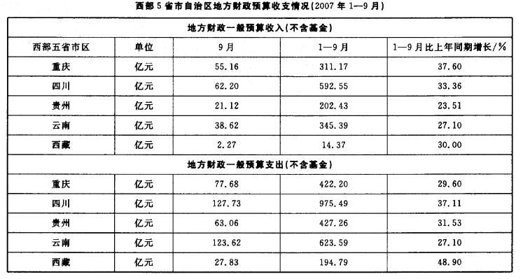 2007年1-9月份地方财政一般预算收入年增长额最大的省(市、自治区)是( )。 A.重庆 B.西藏 C.四川 D.云南