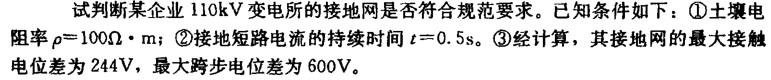 某发电厂配电装置的接地装置,接地网的接地电阻计算值为0.2020;计算用的入地短路电流采用值为9.122kA,最大接触电位差系数的计算值为0.22;最大...